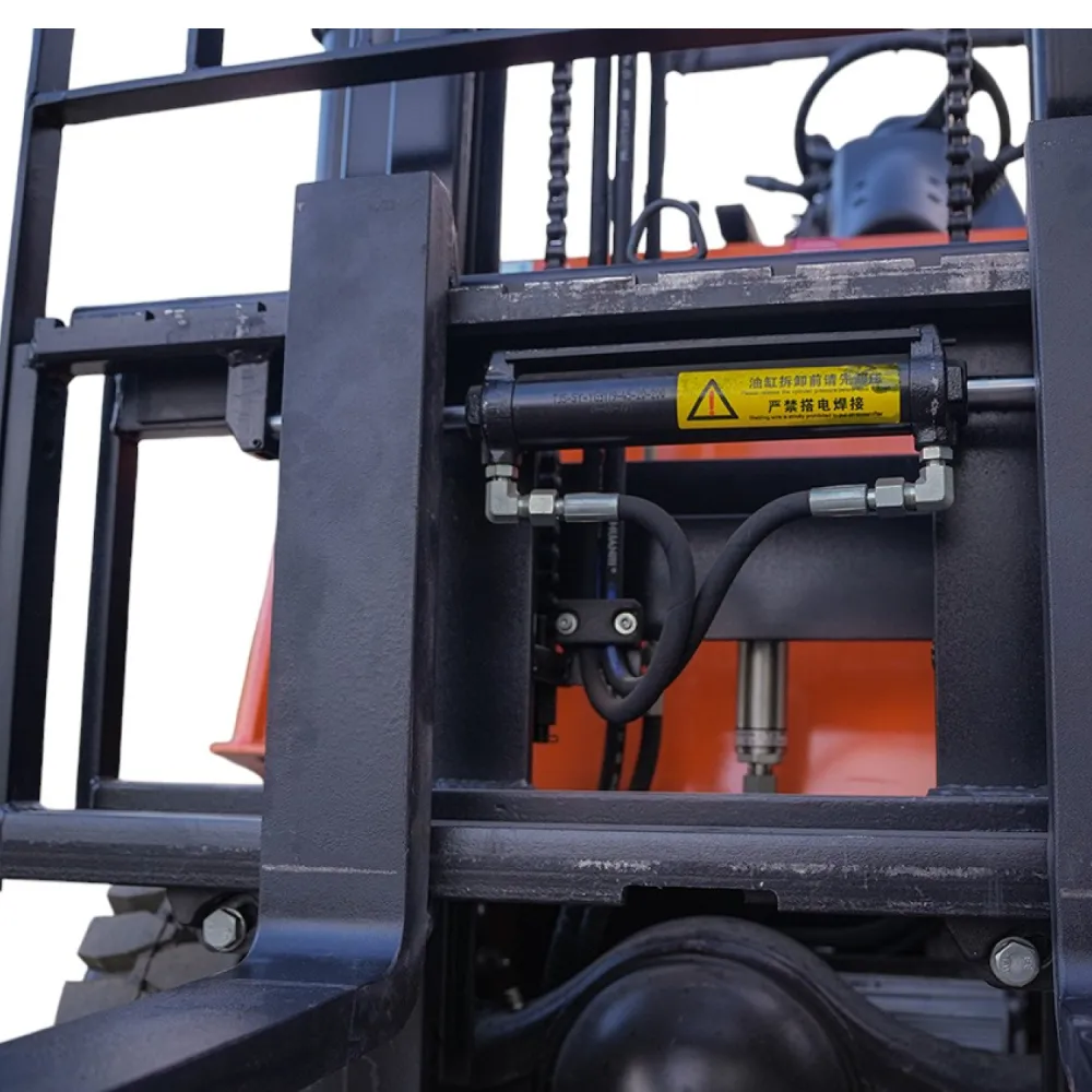Прочные цельнолитые шины и четырёхколёсное исполнение обеспечивают устойчивость на разных поверхностях. Угол наклона мачты (5° вперёд и 10° назад) упрощает работу с грузами, а поперечная регулировка вил от 100 до 1040 мм делает технику универсальной для разных типов паллет.