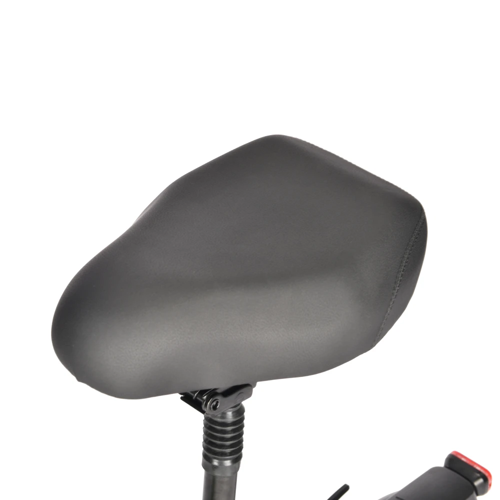 Алюминиевый сплав - это материал электросамоката, он легкий и прочный, в связи с чем его вес всего 23 килограмма, а на борт можно подняться с предельной массой в 125 килограмм. Вы сможете не только самостоятельно кататься, но и перевозить любые вещи, положив их с собой. Электромотор самоката позволит вам достигнуть максимальной скорости в 45 км/ч. Задний привод и надувные колеса с диаметром в 11 дюймов позволят вам передвигаться с максимальным комфортом и чувством защищенности.