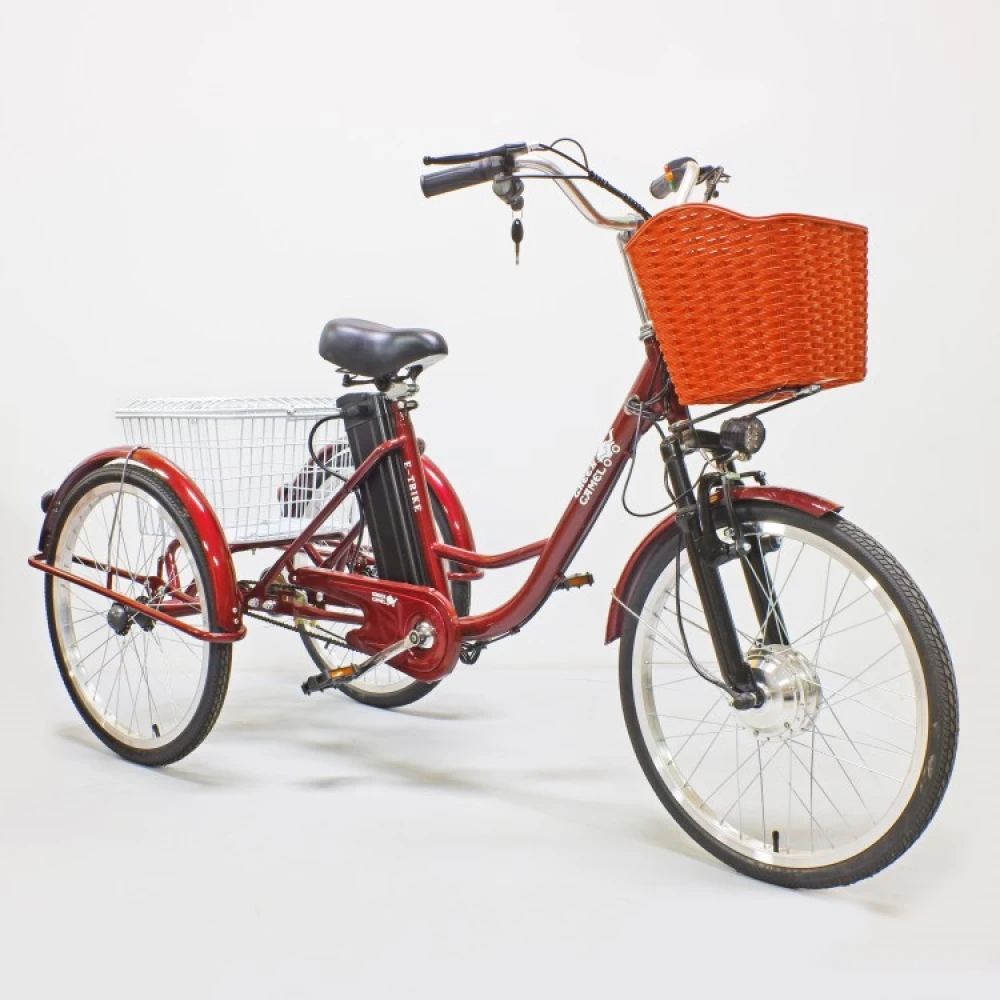 Электровелосипед представлен компактными эргономичными характеристиками, предназначен для ежедневных прогулок и грузоперевозок. Трехколесная модель оснащена всем необходимым для комфорта и удобства. Оснащена 2 компактными корзинами, первая из которых выглядит модно и привлекательно, а вторая – вместительная. Модель оснащена удобным регулируемым сиденьем, повторяющим анатомические части тела ездока, снимающая нагрузку с позвоночника, не допускающая усталости при длительной езде.