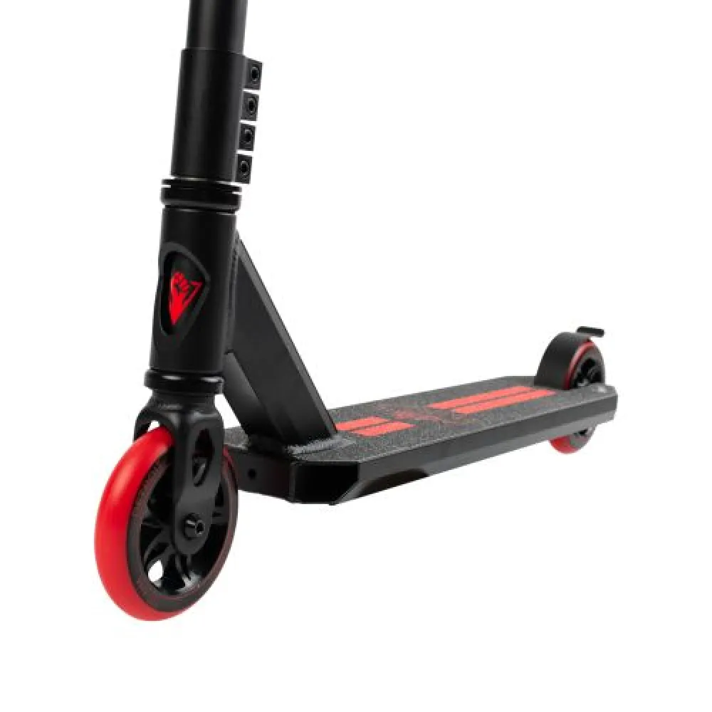 Трюковой самокат Haevner DETROIT черно-красный – яркая заметная модель создана для победителей, лидеров соревнований, амбициозных активных личностей массой до 100 кг.